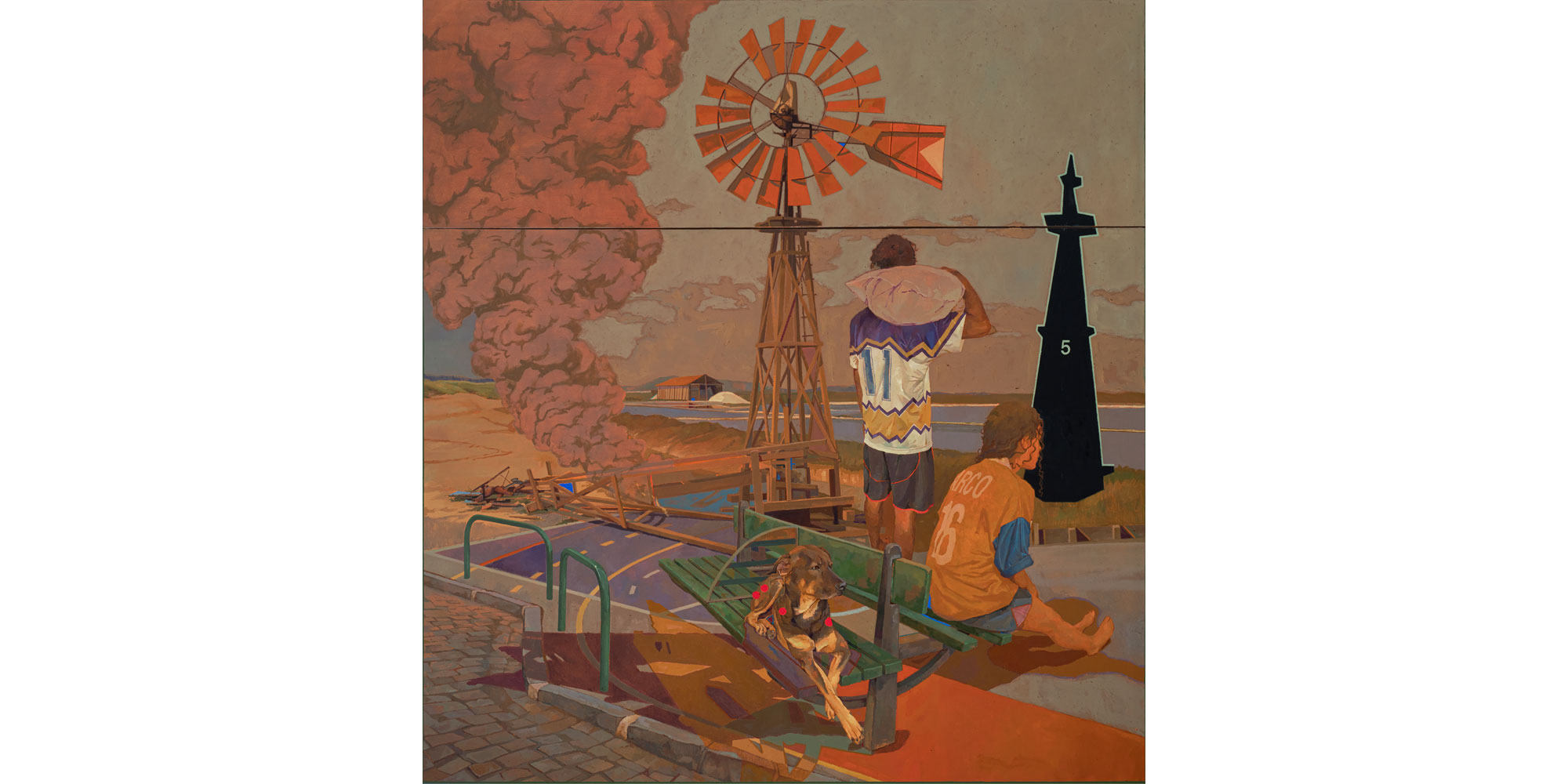 À l’occasion d’Art Paris, la galerie Salon/H présente une exposition personnelle du jeune artiste brésilien Ian Salamente. Né à Cabo Frio et installé à Rio de Janeiro, il développe une peinture figurative intense où sel cristallisé, paysages salins, trophées fissurés et fragments de culture populaire composent un langage visuel singulier. Entre mémoire des salinas de la lagune d’Araruama et tensions de la vie urbaine, ses œuvres déploient une iconographie puissante qui mêle une histoire de territoire et les imaginaires contemporains.