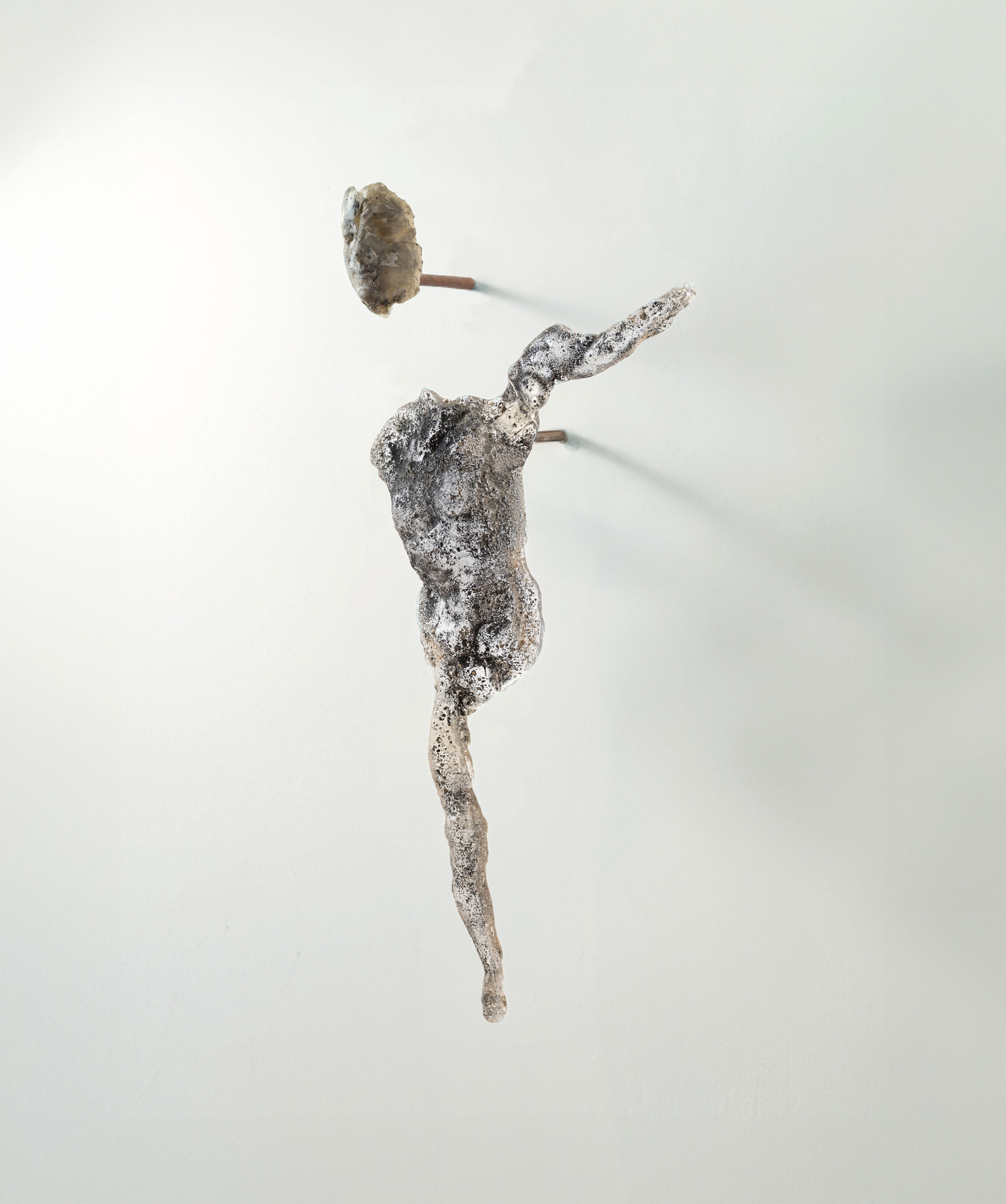 Keanu Lebon est un artiste plasticien français né en 1994 à Évry. Diplômé de l’École supérieure des Beaux-Arts de Bordeaux (EBABX) option Art, il poursuit sa formation à l’École des Beaux-Arts de Marseille, puis aux Beaux-Arts de Paris dont il sort diplômé en 2023. Il est lauréat de la Bourse Bredin-Prat, et finaliste du Prix Carré sur Seine. Sa démarche croise évènements historiques, anatomie du vivant et spéculation formelle. Il explore comment l’économie, la génétique et la spiritualité façonnent les corps, en intégrant matériaux organiques, objets de récupération ou moulages de son propre corps. Sa pratique s’ancre dans l’expérimentation de la fusion des métaux, de la pâte de verre et d’une grande variété de matériaux. À travers ses sculptures et installations, il explore l’hybridation entre formes organiques et structures industrielles, s’inspirant de figures classiques ou de références issues de l’iconographie religieuse. Son travail revisite ces archétypes dans une perspective contemporaine, mêlant savoir-faire artisanal et création de matières inédites.