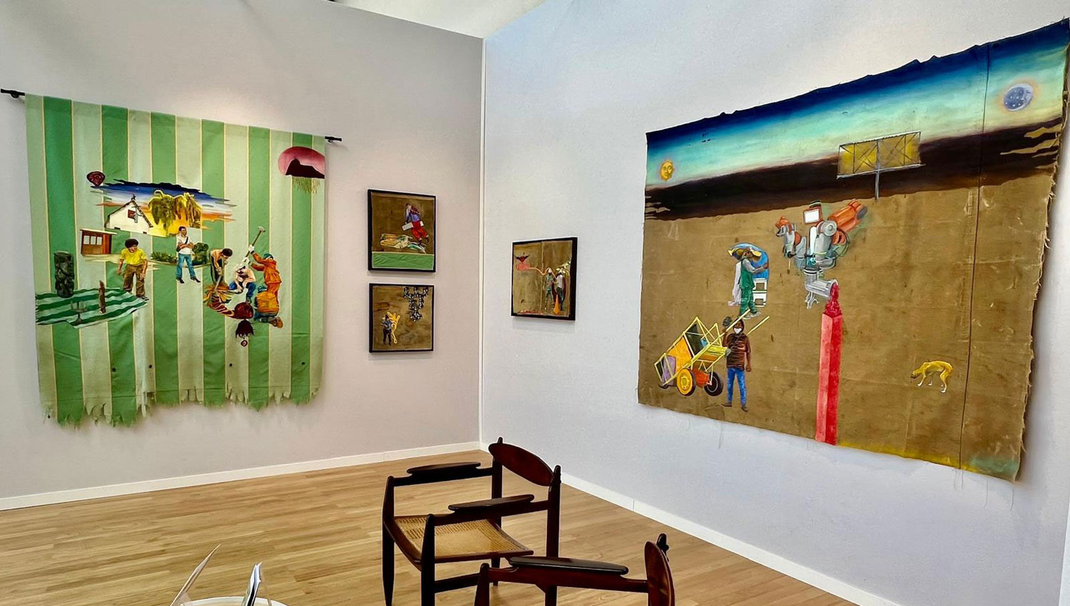 Pour sa troisième participation à Art Paris, le Salon/ H consacre un solo show à ce jeune artiste brésilien qui à tout juste 30 ans, s’est imposé comme artiste majeur de sa génération. Son travail éminemment politique prend pour point de départ, les flux migratoires qui touchent les travailleurs non qualifiés du Brésil. Ouvriers, artisans, pêcheurs, éboueurs, vendeurs ambulants, autant d’individus invisibilisés qu’il a rencontrés, et dont il témoigne du déplacement forcé. Mais loin de s’inscrire dans un dispositif naturaliste, Rezende construit des arrangements narratifs qui à partir de cette réalité tangible, hybrident d’autres figures issues de l’univers des rêves, de la bande dessinée, de la culture pop, et du religieux.